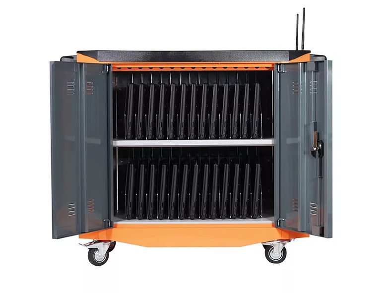 Тележка для ноутбуков представляет собой металлический передвижной сейф, который предназначен для хранения и зарядки оборудования. Предлагаемый инструмент необходим для качественной организации мобильного компьютерного класса в школе.