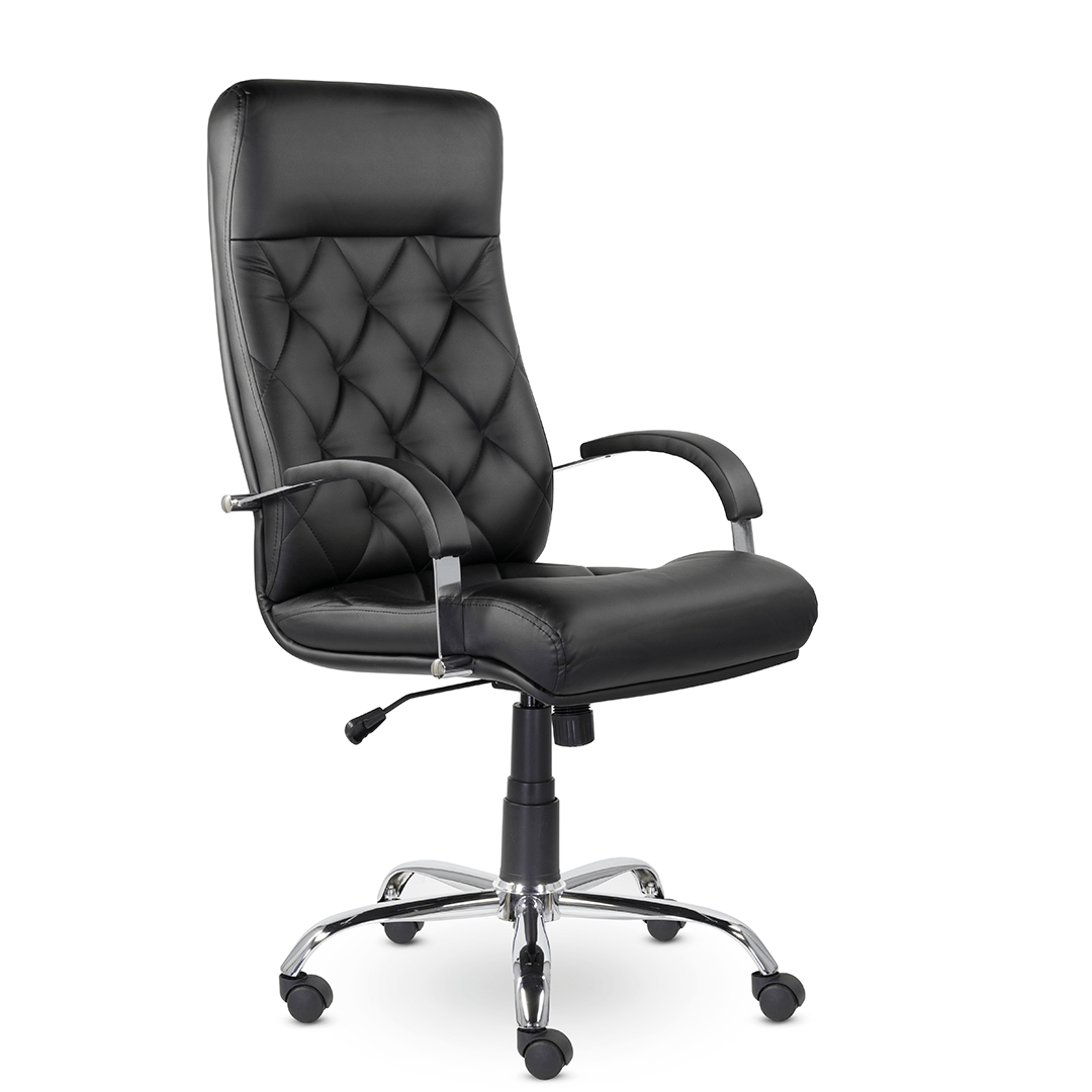 Кресло имеет креативную прострочку, делящие каркас на небольшие квадраты, а также широкий подголовник. Удобные подлокотники с мягкими накладками и хромированная крестовина. Максимальная нагрузка - 120 кг.