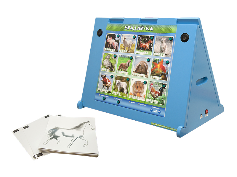В комплекте со стендом поставляются карточки с контурным изображением животных, что позволяет разнообразить игровую форму обучения. Дети, поделенные на две команды, выбирают изображение, которое, по их мнению, соответствует животному, чей контур прорисован на карточке, показанной воспитателем. Выбор осуществляется путем нажатия на светоиндикационную кнопку. Выигрывает команда, давшая первой наибольшее количество верных ответов.