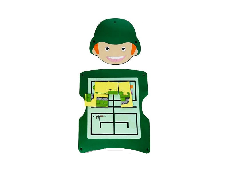 Улыбающийся военный располагает к игре, поэтому дети без страха перед неизвестным принимают поставленную задачу и учатся достигать цель.