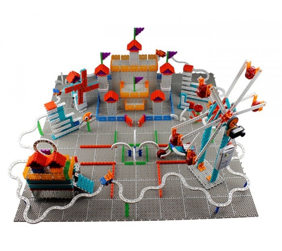 Комплект состоит из 915 деталей, в т.ч. прошитой материнской платы - 2 шт., моторов постоянного тока - 2 шт. Конструктивные элементы выполнены из прочной ABC-пластмассы и представляют собой блоки с защелками, а также рамки, втулки, шестеренки, колеса, рамки. Максимальный размер поля: 75 х 75 см.