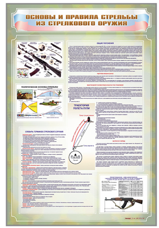 Стенд представляет собой информационную панель, на которой размещены основные правила стрельбы из стрелкового оружия.